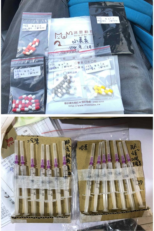 貓咪病情複雜,醫生們懷疑是腫瘤問題,於是7月初寫信向協會尋求幫助,目前已於合作醫院長青進行各項檢測,並於楊動物醫院住院照護中。經檢測,無腫瘤活躍細胞,細菌培養亦無細菌感染,已再進一步另做細菌切片染色檢測。第一階段報告結果,醫師認為,下巴跟頸部後側莫名腫大的原因,跟貓愛滋發病有關。目前投以抗生素、造血針治療中。