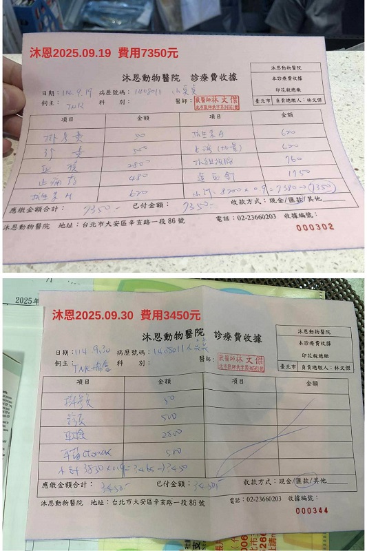 後因照護員發現小點點食慾變差同時嘴巴的潰傷變嚴重所以於2025年9月30日提前回診,因之前在住院期間就有體溫忽高忽低的狀況,應與免疫系統問題相關。因整體血檢進步就先觀察。平日需注意嘴邊潰瘍處的清潔,可用清水擦拭保持乾淨。左耳紅腫也可能與免疫系統問題相關,可先用耳藥觀察是否改善。同時持續泥便則繼續增加止瀉用藥並持續觀察傷口及精神食慾狀況。本筆醫助為2025年9月19日到2025年9月30日於沐恩醫院的費用,包含血檢及各項用藥。