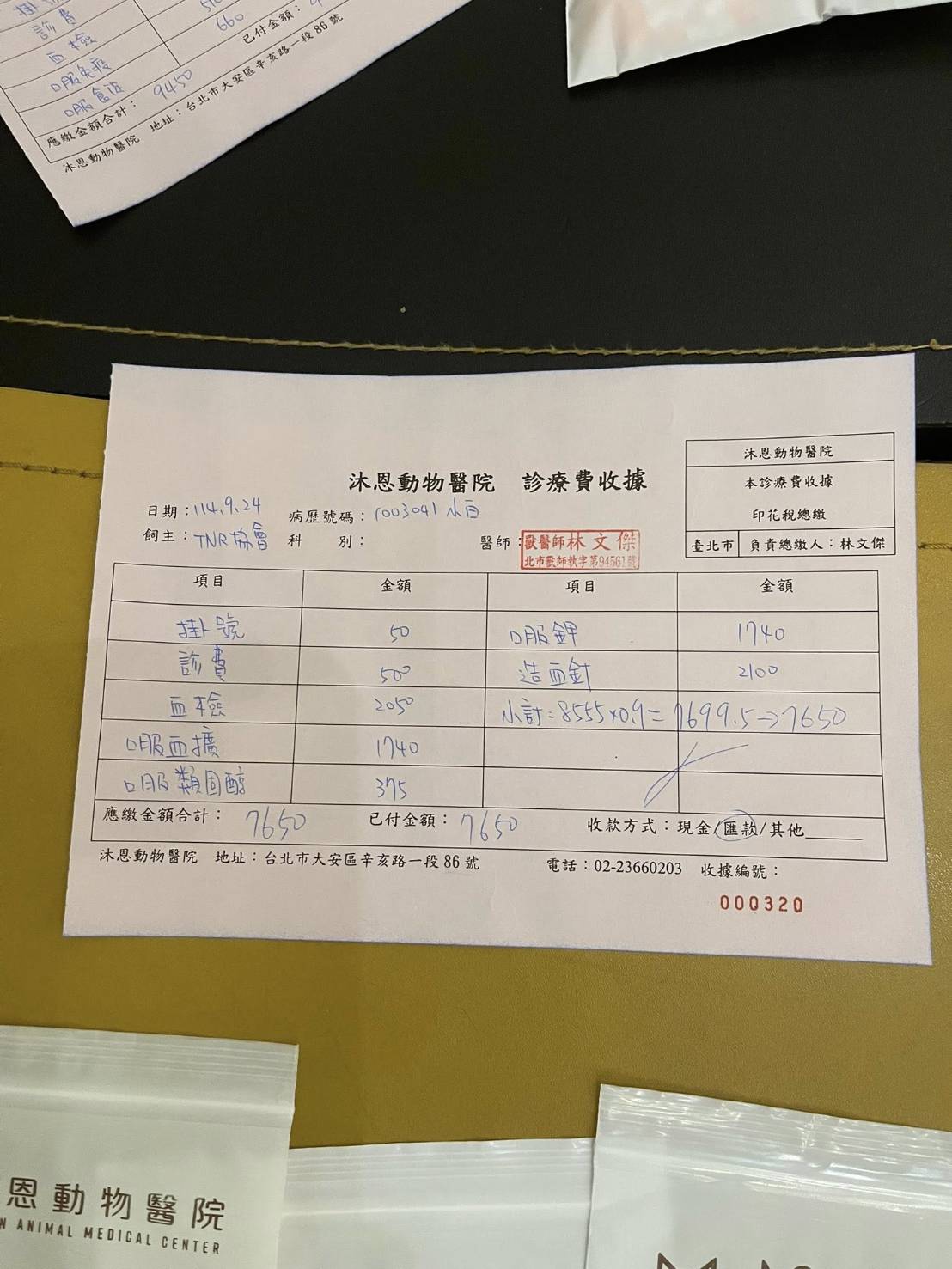 主題: 治療腎功能衰退的小白及9月處方飼料添購 申請者姓名: TNR協會 花色: 白色 申請日期: 2025-10-02 13:30:59 申請者部落格: 申請者臉書網址: 所在縣市/合作醫院: 台北市/沐恩動物醫院 治療費用: 13800元 需求名額: 46人 平均每單位: 300元 已報名名額: 0 尚需求名額: 46 報名人員: 候補人員: 因考慮無人遞補、轉匯收費、信用卡刷卡匯率、寄送收據與郵資等成本,每筆醫助人數將斟酌彈性增加1-5位名額。 動物病情說明: 小白原本生活在苗栗安養之家的山下,平時有好心人家餵養,2021年間,已經13歲的小白因身體逐漸消瘦且毛髮雜亂,所以在2021年3月間,協會工作人員將其帶至台北沐恩醫院檢查,當天體重只有2.9kg,嚴重脫水、有許多跳蚤,嚴重口炎、已潰爛發出異味、毛髮糾結雜亂,血檢結果,愛滋白血陰性、發炎指數很高還有貧血,當天辦理住院,做體內外驅蟲、打皮下輸液及用藥,並送驗血巴東檢驗以確定貧血原因,住院治療至食慾狀況較為穩定後接出院住進台北安養之家,但仍需持續回診,為治療嚴重的口炎,在內科狀況較為穩定後進行牙周手術,術後還是需要持續回診治療口炎,經過數月,小白的健康逐漸有進步,皮膚毛髮也變好、體重持續增加,雖仍須回診用藥,但已經可以延長回診時間及可少用藥。