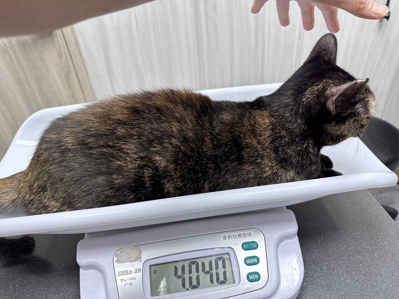 2025年6月11日,黛咪因每週日的固定測量體重逐漸減輕,又眼睛分泌物多、結膜紅及有濃鼻涕,還有右後腳底摸起來有點泡泡,約診木恩醫院檢查,觸診後腳略為泡泡的但沒有發現傷口,血檢結果,發炎指數及肝指數都升高,X光檢查並沒有發現異常,超音波檢查肝臟沒有發現腫瘤影像,但沒有看到膽的影像,而黛咪來到協會後並未做過膽摘除手術,這樣情況除了是膽有纖維化造成與旁邊組織的辨認度變差,或是膽囊曾破裂沒有脹大,因血檢顯示並不像肝臟有急性發炎,所以就先吃抗生素,除了對呼吸道有效果,若肝指數升高是細菌感染引起及腳底泡泡的是發炎都也會有效果,同時也有促進食慾功能,眼睛則點抗生素眼藥水及人工淚液。