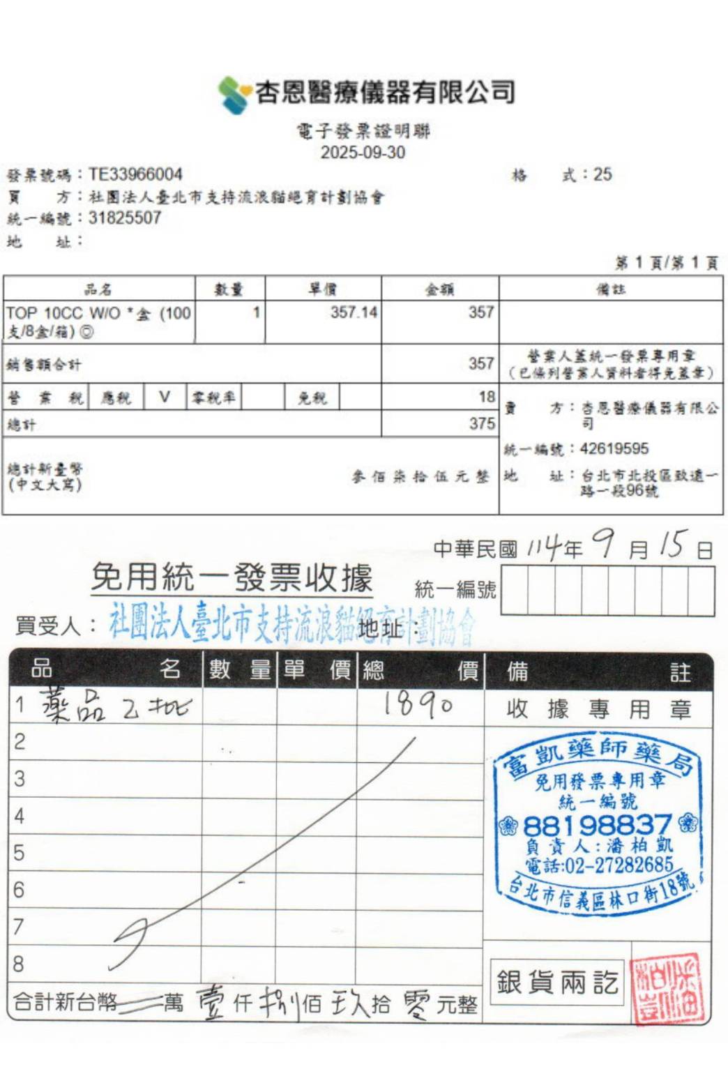 收據可抵稅請將地址mail至cashier@tnrtw.org0912940006763