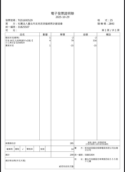 戶名:社團法人臺北市支持流浪貓絕育計劃協會