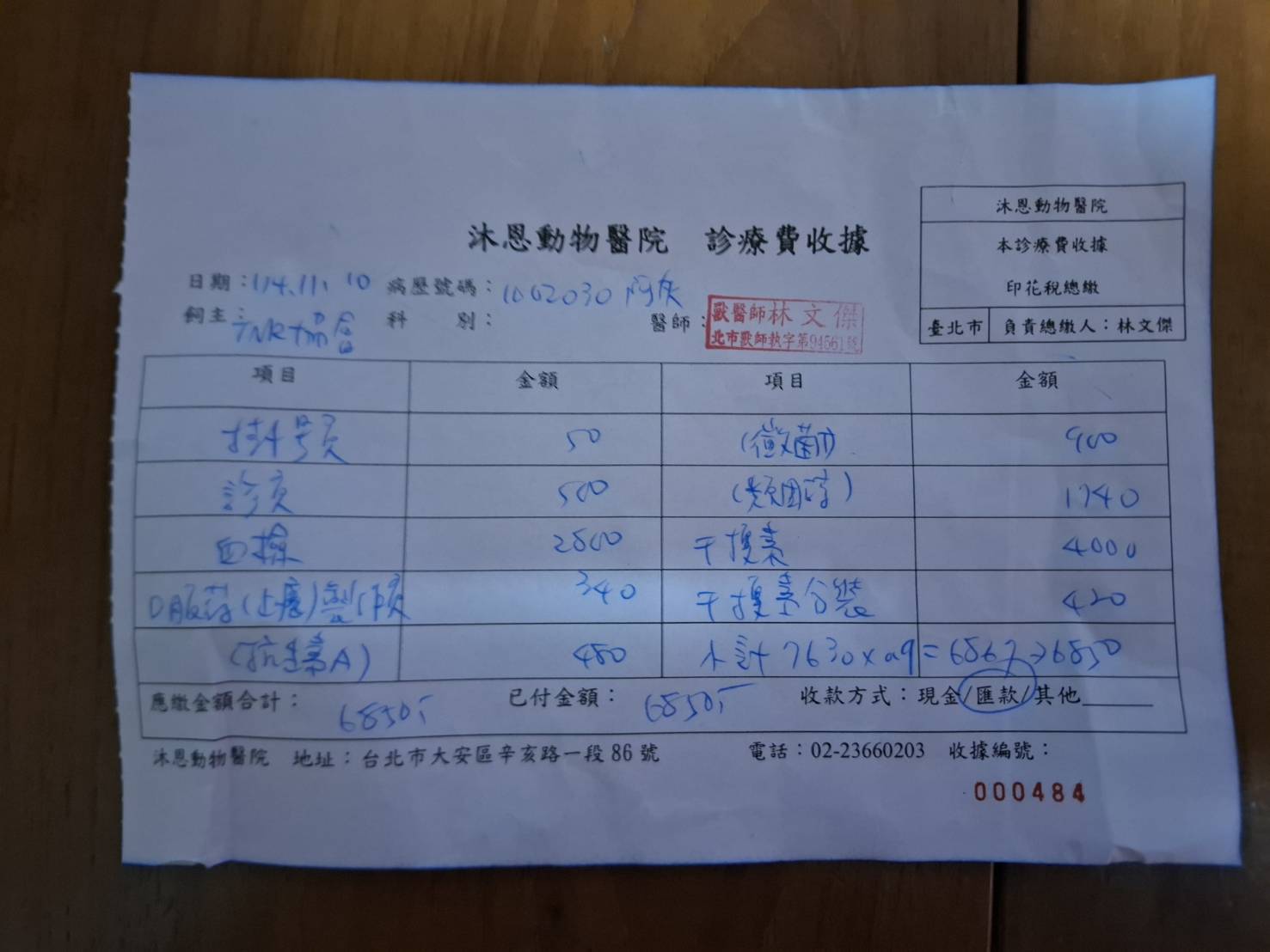 阿灰的口炎舌炎及皮膚問題仍需持續回診,本筆醫助是2025年10月17日到2025年11月10日間於沐恩醫院的費用,包含回診檢查、血檢及用藥。