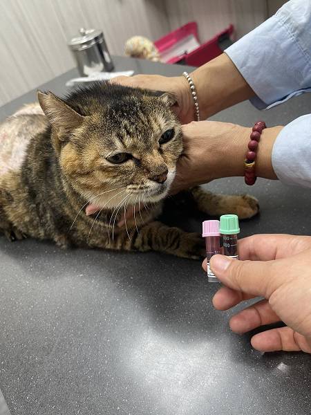 血檢結果除了發炎指數較高,其他指數並無異常,X光檢查,肺部沒有塌陷或是發炎跡象,根據檢查結果研判是較單純的呼吸道症狀,所以喵喵醬就先留在台北安養之家。