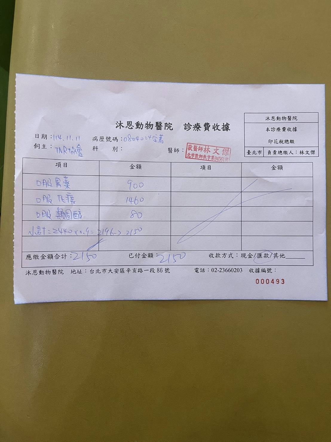 於2025年8月22日回診,腎指數跟肝指數稍降,但禁止吃點心,吃罐頭跟飼料就好。目前持續用藥。本筆醫助是2025年11月7日至2025年11月11日間於沐恩醫院取藥的費用。