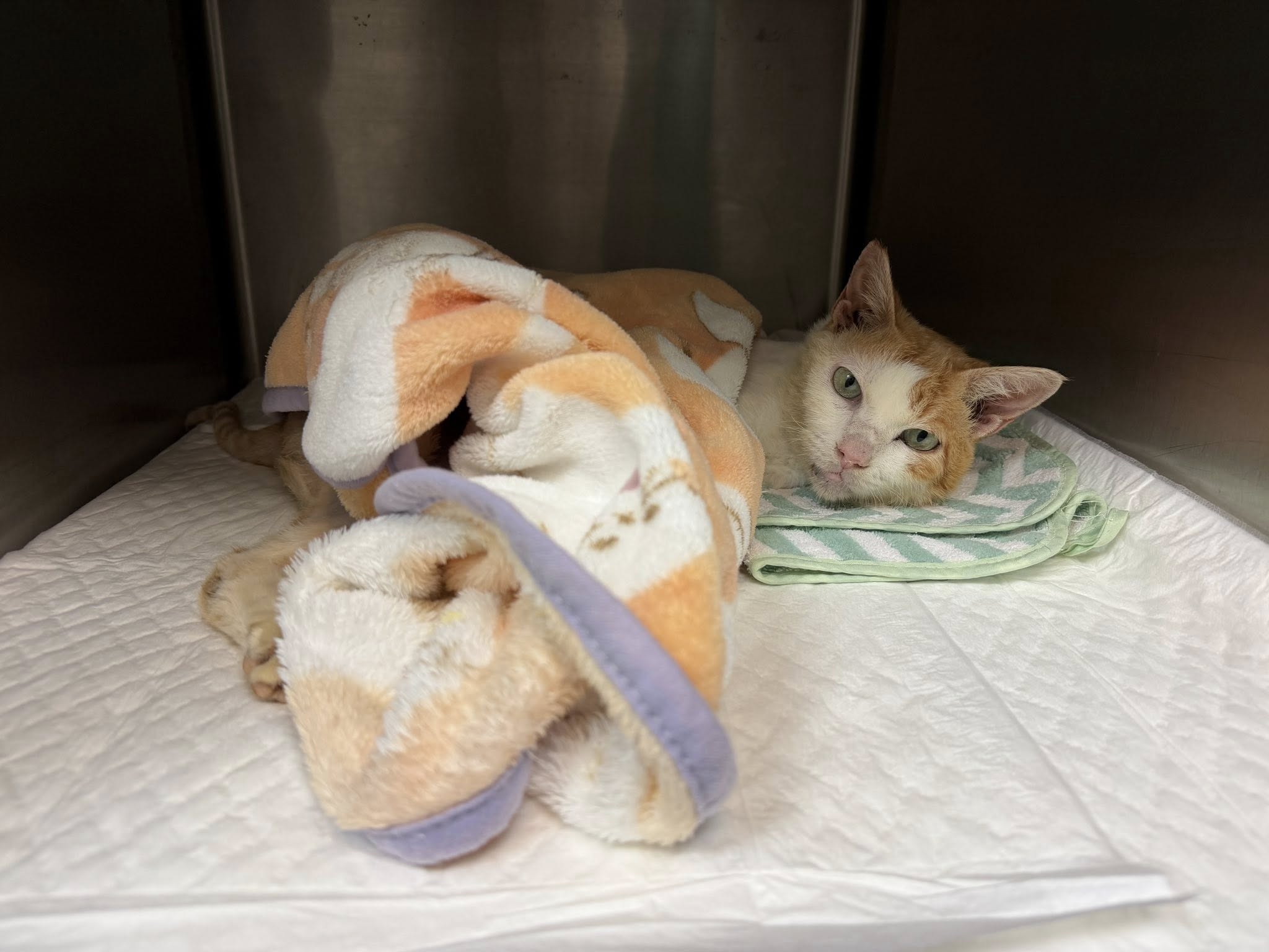 近日因Lucky無法自行排尿需進行擠尿,一早發現有血尿狀況而於2025年11月6日安排回診,並先住院觀察,現場醫師有幫忙擠尿,未擠前就開始漏尿,醫師說擠出的尿液沒有血尿,但偏深色。於是住院觀察。住院後進行檢驗尿道並無發炎也無細菌感染,可能是擠尿時擠壓到腸子引起出血,於2025年11月17日出院後,醫囑指示先讓lucky一天一次擠尿,兩次協助擠便。並且注意保暖,為避免褥瘡每四小時需翻身一次,同時加強身體清潔,避免半夜身體因浸泡尿液失溫。