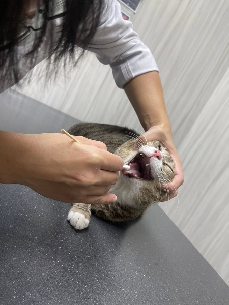 在2020年的5月間,文藝貓媽媽因右眼腫起與口腔異味嚴重,自苗栗帶回台北沐恩醫院進行牙周手術,因術後須吃藥及定期回診,所以就留在台北安養之家,經過一段時間的治療,口炎已有明顯改善,但因是以類固醇用藥控制,須回診追蹤有無影響血糖、並希望能在口炎改善時逐漸調降劑量,所以還是需要持續回診追蹤。