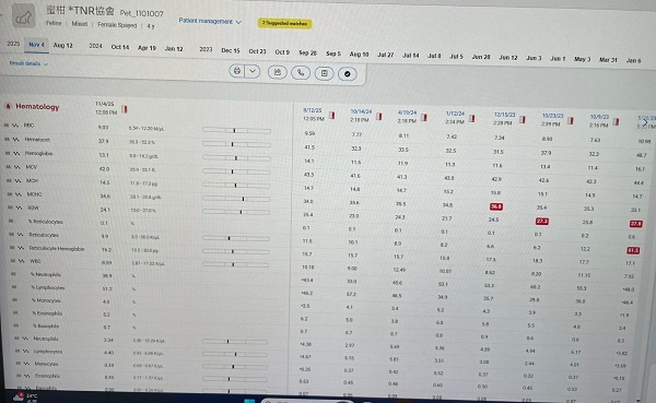 2025年8月12日回診追蹤,體重有增加,血檢結果除了腎指數升高其餘都正常,腎指數增加幅度有點多需兩個月後回診再追蹤。