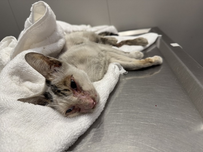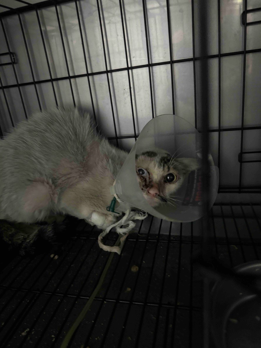在前一次門診時,我們已替白白申請過募款。住院期間,醫師評估後投以腹膜炎的抗病毒藥物,令人欣慰的是,治療已有明顯成效。白白的精神與食慾逐漸回穩,醫師也認為目前狀況穩定,可以帶回家持續照顧與休養。現在也有了更美麗的名字,叫做白玉。