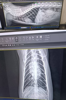 原本是先讓乖豹再留在台北安養之家觀察一小段時間,希望確定健康無虞後,再讓他回到熟悉的大湖安養之家,但在2021年1月,照護員回報乖豹食慾體重都有漸降,1月23日呼吸看來急促,立刻約診沐恩醫院檢查,檢查結果,體溫40.3度,超音波及X光檢查發現胸腔有不明團塊及胸水,給予鎮定後抽出了有膿的胸水,當天辦理住院打泰寧抗生素針,醫師研判是嚴重的細菌感染和發炎造成膿胸,住院2天時,紅血球有持續降低的情況,血容比低到21,1月25日放置胸管引流、沖洗胸腔並引流膿水,每日都需要血檢及沖洗胸腔,在狀況嚴重會需要開胸手術移除胸腔中的膿包及清創,可能會需要輸血,幸好乖豹的食慾精神都有逐漸變好、血容比也有慢慢回升,至2月4日胸管沖洗出都已是乾淨的水,食慾精神也都穩定,醫師認為已可出院自行照護醫療,因治療剃掉肚子一大片毛的乖豹,讓大家很心疼,怕他冷為他穿上可愛又保暖的衣服,也每天準備好多好吃的罐罐幫他補身體,至2月17日回診的X光檢查,原本住院時胸腔有一大一小兩個團塊已經都不見了,這樣表示大團塊只是膿包,所以吃了抗生素就消失了,3月17日再回診,血檢結果都有很好的進步,體重也有回升,膿胸的危機已經解除,只要三個月後再回診拍X光及追蹤血檢即可。