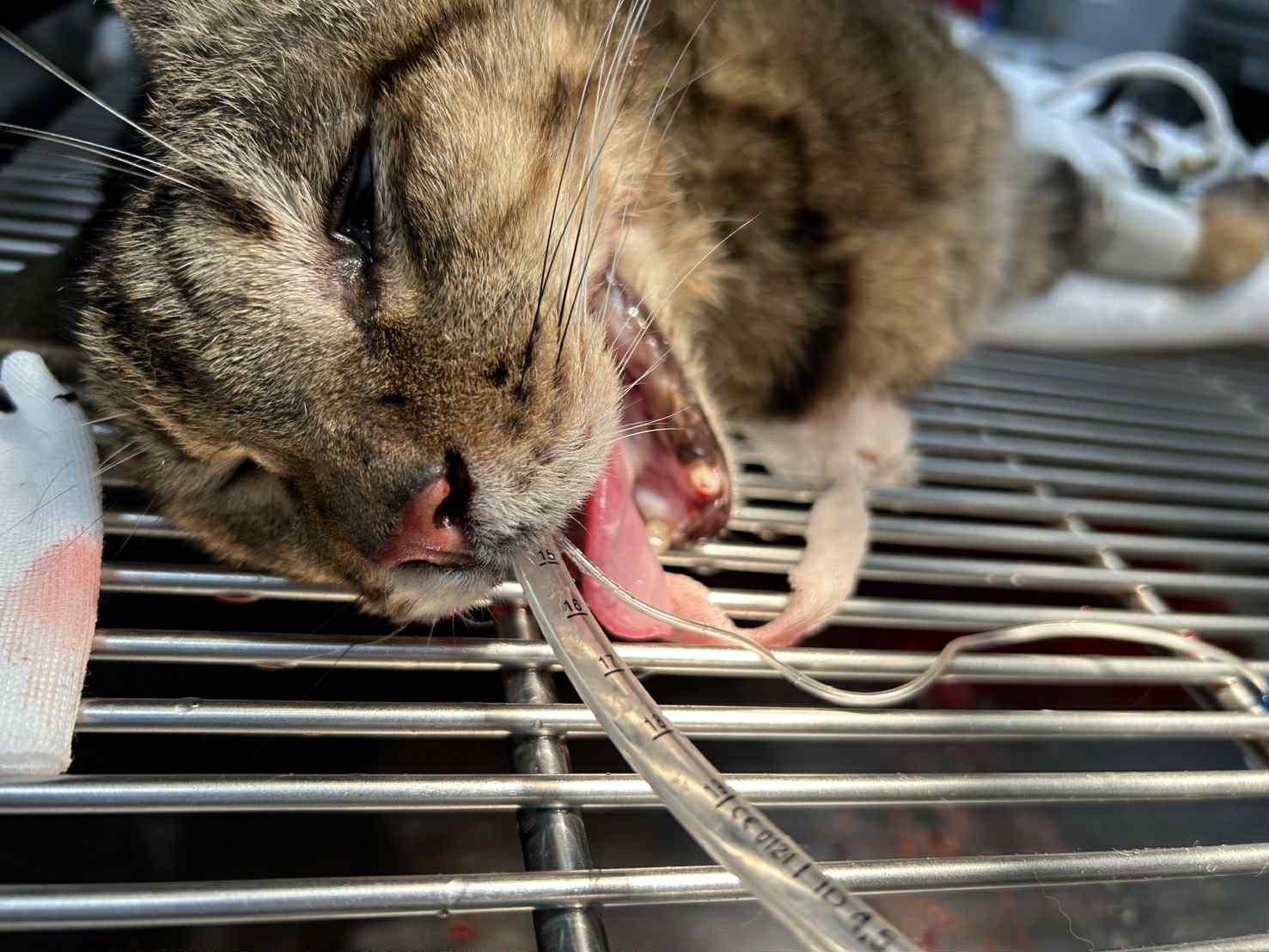 原安置於苗栗貓屋的乖豹於2025年10月與其他貓咪全數移回台北安養之家後發現體型逐漸消瘦,且背上有一顆顆肉瘤以及牙齒有鬆動的狀況,於是安排2025年11月28日於沐恩看診,醫師表示整體狀況還不錯,背上粉瘤為良性,主要是牙結石嚴重,研判體重下滑應與此有關,需盡快安排牙周手術。後再於同年12月17日進行牙周手術,後面的臼齒、2顆下門牙及上顎那一顆不好犬齒都移除,保留下面兩顆犬齒,同時背部腫塊偏良性因此暫不切除。本筆醫助是自2025年11月28日至2025年12月17日間於沐恩醫院的費用,包含看診各項檢驗、牙周手術及用藥。