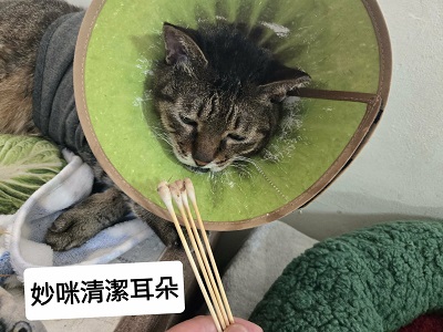 因妙咪多數是在皮膚癢舔啃時發作癲癇,於是自2023年3月間開始,於長青醫院的回診,由皮膚科與神經科醫師共同檢查,寄望皮膚狀況改善後也能減少癲癇發作情形。
