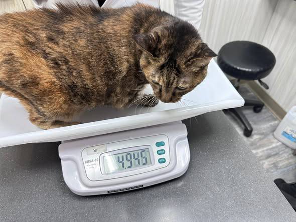 近期2025年8月12日因連續多日嘔吐及食慾不振安排回診,因擔心是胰臟炎安排超音波診斷,所幸未發現特殊狀況,唯有指數上升,研判是嘔吐造成,因此再加開胃乳,並持續觀察回報醫院。一個禮拜後8/19再度回診查看腎指數已有下降,需持續觀察食慾及嘔吐狀況。