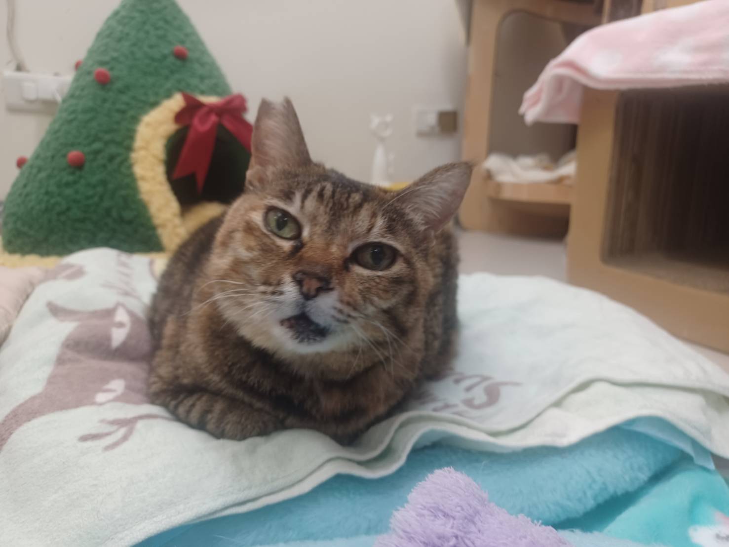 候補人員: 因考慮無人遞補、轉匯收費、信用卡刷卡匯率、寄送收據與郵資等成本,每筆醫助人數將斟酌彈性增加1-5位名額。 動物病情說明: 定著是協會在2019年3月22日救援的貓咪,當時志工執行tnr任務至傍晚準備收工時,看到一隻肚子大大的貓咪出現,邊走邊搖頭晃腦像是農藥中毒,志工拿手邊剩下的罐頭給她吃頓飽,結果貓咪轉身就撞到旁邊的磚塊摔個四腳朝天,還滾到旁邊小斜坡,志工見狀心疼到不行,於是硬把誘捕籠空出一個來誘捕,帶回台北醫院檢查,照超音波、觸診都認為無懷孕,肚子腫脹極可能是吃不潔食物,血檢二合一檢查是愛滋陽性,經詢問神經專科醫師後,為定著選擇氣麻結紮,術後住院休養幾日,待狀況穩定後便接回協會安養之家,並為貓咪取名"定著"(台語發音),希望她的抖抖情況能逐漸好轉。
