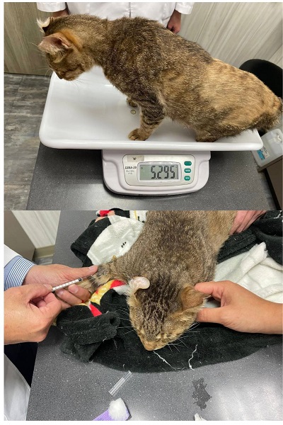 2026年2月3日回診,胃乳先維持一樣劑量跟次數。早晚各灌食dr25粉10g。若是有不自己吃狀態:前一餐沒有吃或是正常貓食量一半不到,就需要灌食;剛好一半或一半以上不用灌食。如果會自己找食物可以加放可以多放半罐白金罐+5-10克dr25,如多吃就不用灌食。2月23日再次回診,此次為定期回醫院打高劑量干擾素,同時檢查口腔與皮膚。口腔狀況持平。皮膚黴菌目前都維持在下背部,沒有再擴散。就先繼續梳毛即可。排便狀況穩定,止瀉藥可以先停,如果拉肚子再吃回去。飲食方面一樣需持續固定種類。