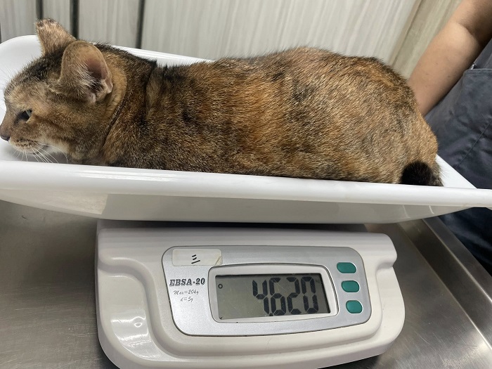 至目前狸貓的食慾精神都很好,她剛到安養之家時,個性還極為緊張,吃藥打針都會生氣要打人,在照護員細心安撫後,現在已經很適應安養之家的生活、放鬆很多,也會在吃點心時間大聲喵喵叫的討吃、給摸摸,體型也越來越圓潤,為了幫助狸貓的健康能更穩定,除了配合醫師指示的定期回診及用藥,協會也安排狸貓接受每月的胜肽治療。