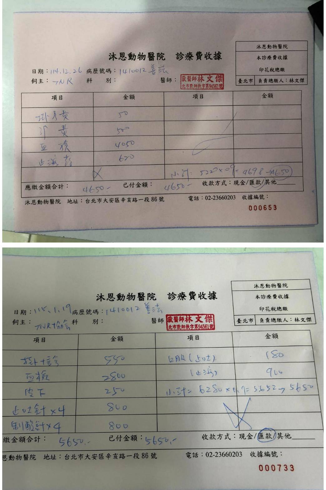 貓咪已年邁,思及身體狀況已走下坡,於9月12日出院後安置於協會台北貓房安養。能為年邁街貓盡份心力,是我們的榮幸,老三花取名善法(三花諧音),也頗有種修行者意味,代表對貓咪深深的祝福。本筆醫助是自2025年12月26日至2026年1月19日於沐恩醫院的費用,包含血檢及用藥。