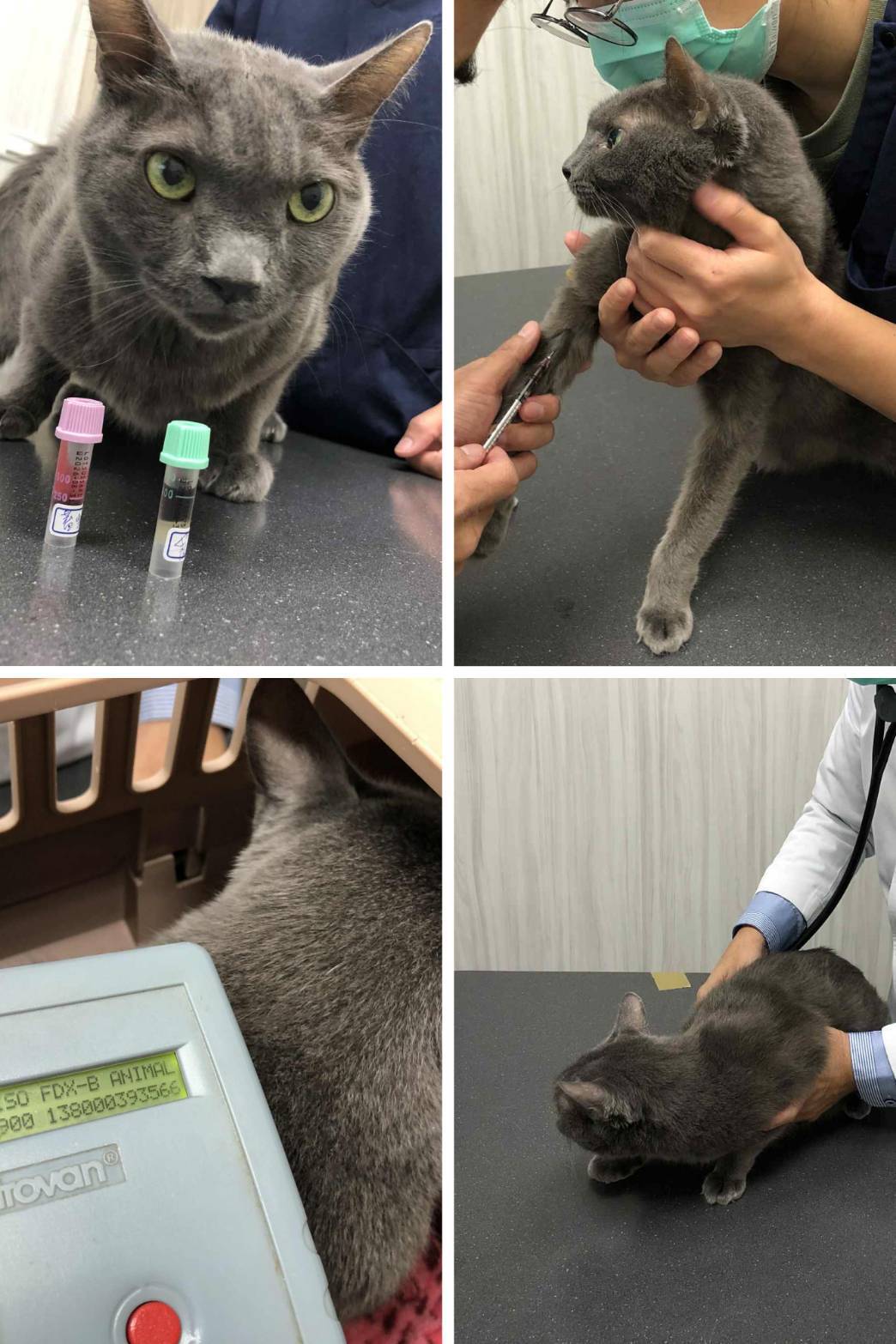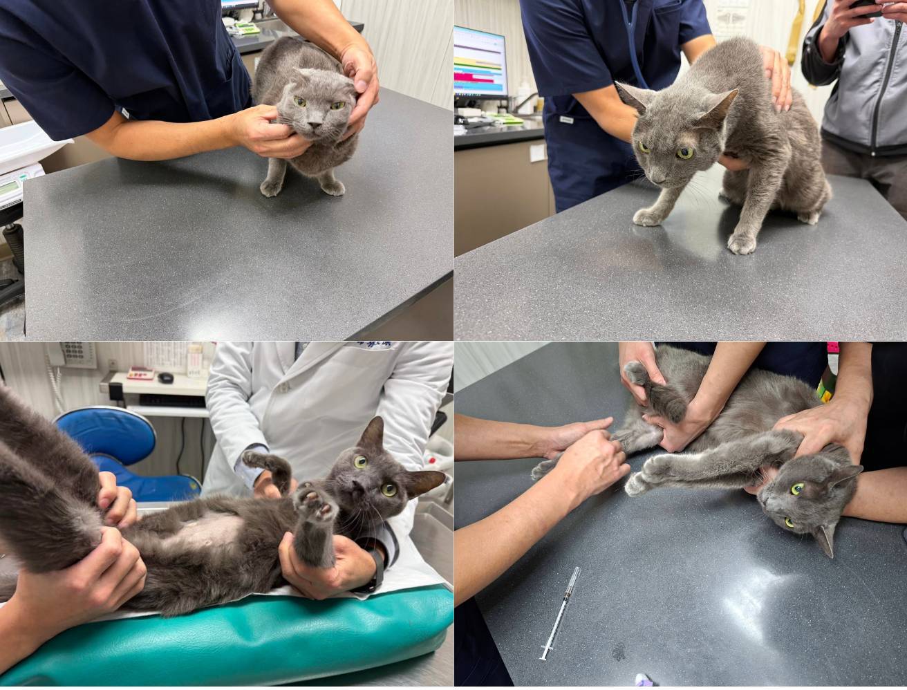 2024年2月15日連續嘔吐,先向醫院拿回制酸止吐針及打皮下輸液,但2月16日早上精神仍不好,因此臨時回診檢查,肛門處的毛有些沾到髒髒的,應是也有拉肚子。血檢結果,胰臟炎陰性,白血球升高於正常值,以檢查結果研判是腸胃炎,開抗生素針劑,為了讓消化道休息,原本的醫院用藥及肝藥都先停,同時因有噴濃鼻涕,採樣送細菌培養。