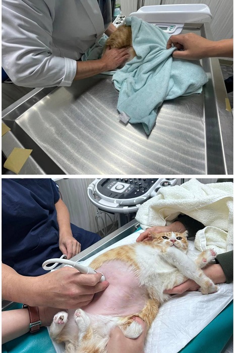 2025年4月1日回診,肝腎指數都正常,紅血球低、白血球高,超音波檢查胸腹部都有一點水,因此呼吸還是稍微比較用力,醫師先幫糕糕打利尿劑希望可以排出水,另外建議再至心臟科看看目前心臟狀況,以作為日後的用藥的評估,因此於2025年4月1日至心臟專科專心醫院檢查,經過心臟超音波及心電圖、聽診、測量血壓等檢查後,檢查結果有明顯心雜音、心律不整程度提高、左心房擴大並有胸水,心臟科醫師有提出其他用藥的建議,並建議糕糕要做甲狀腺指數檢查,因若有甲狀腺問題是會影響心臟及肝臟,完成心臟科檢查後將報告轉達沐恩醫院,2025年4月至2025年6月於沐恩的回診,紅白血球及肝腎指數、甲狀腺都正常、超音波檢查也逐漸沒有胸水了,心臟跳動雖然偶有漏一拍但也比之前較有力,體重也有維持。