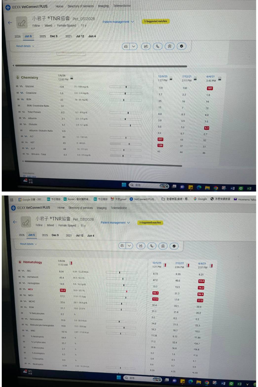 2026年1月於沐恩醫院進行例行回診,血檢結果指數皆正常,先前肝指數偏高也已恢復正常指數。後於2月發現小君子有咳嗽鼻涕便安排2026年2月2日於沐恩取藥先行用藥一個禮拜。再於2月5日回診,醫師表示應是有痰卡住,抗組織胺需持續吃。離胺酸膏加倍。先吃兩週後,如果還是很差再評估是否提前約診灌洗鼻腔。