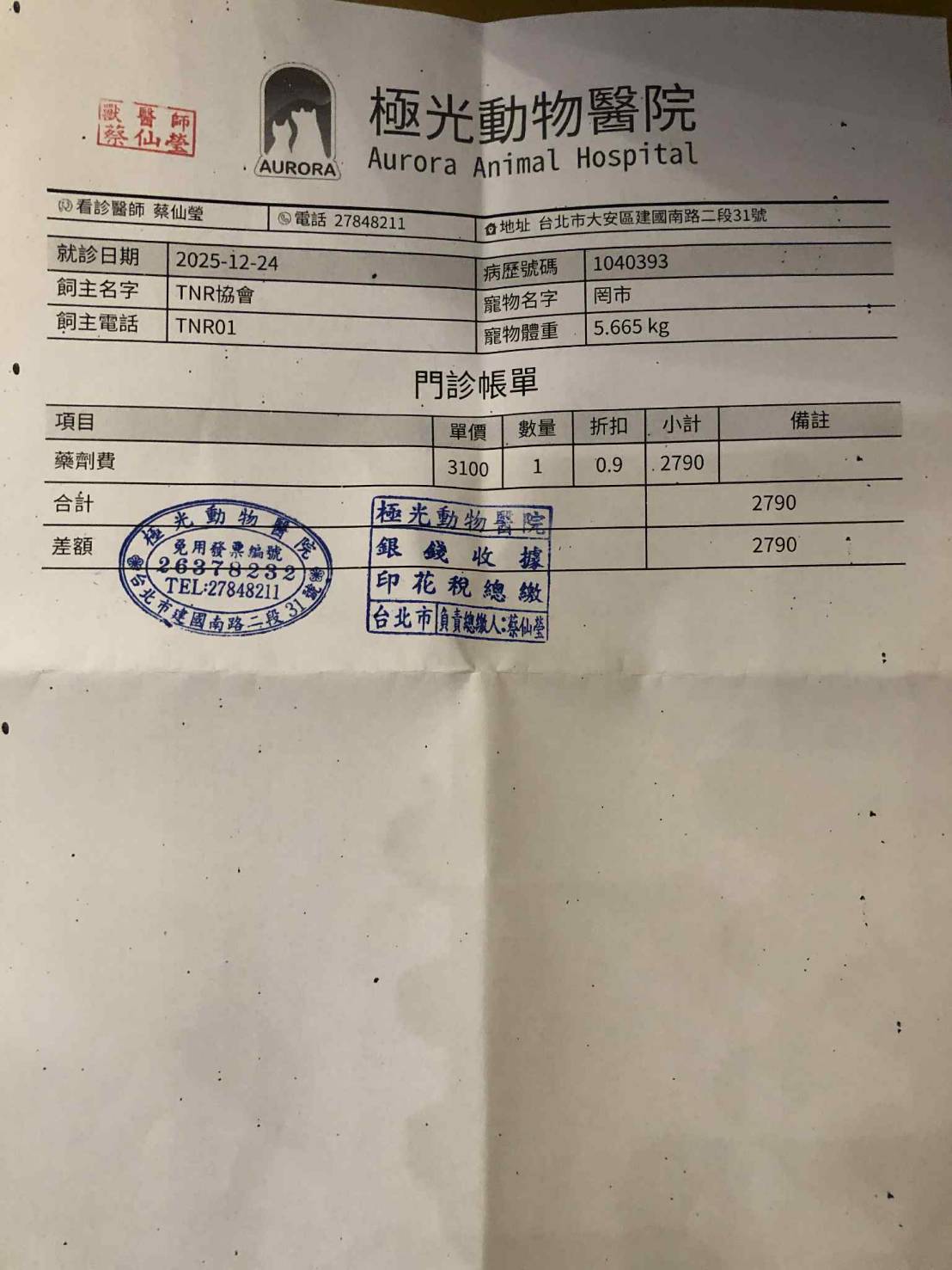 罔市雖然曾經經歷心臟的大手術,但幸好是有協會給予最好最用心的醫療與照護,讓罔市長得圓潤可愛,她的個性也很親人撒嬌,很喜歡翻肚子腳開開的討摸摸,罔市的心臟用藥是終身需求,本筆醫助是2025年12月26日至226年1月24日間於極光動物醫院取心臟藥的費用。