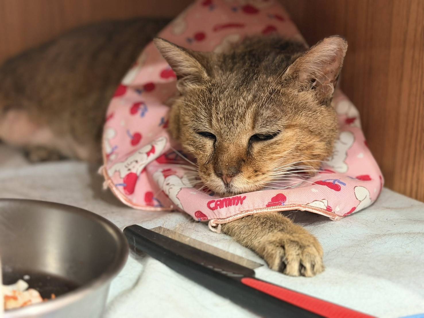 近期11月因仁愛出現黃鼻涕狀況,因此提前於2025年11月25日沐恩回診,血檢發現有些貧血但還無須施打造血針,先吃倍補血,但此次發現血液中有很多油脂擔心回有糖尿病症狀,建議先減量灌食的飼料泥。淋巴結有稍微變大但還在可預期範圍內,皮膚黴菌狀況也有好轉可持續保持清潔。
