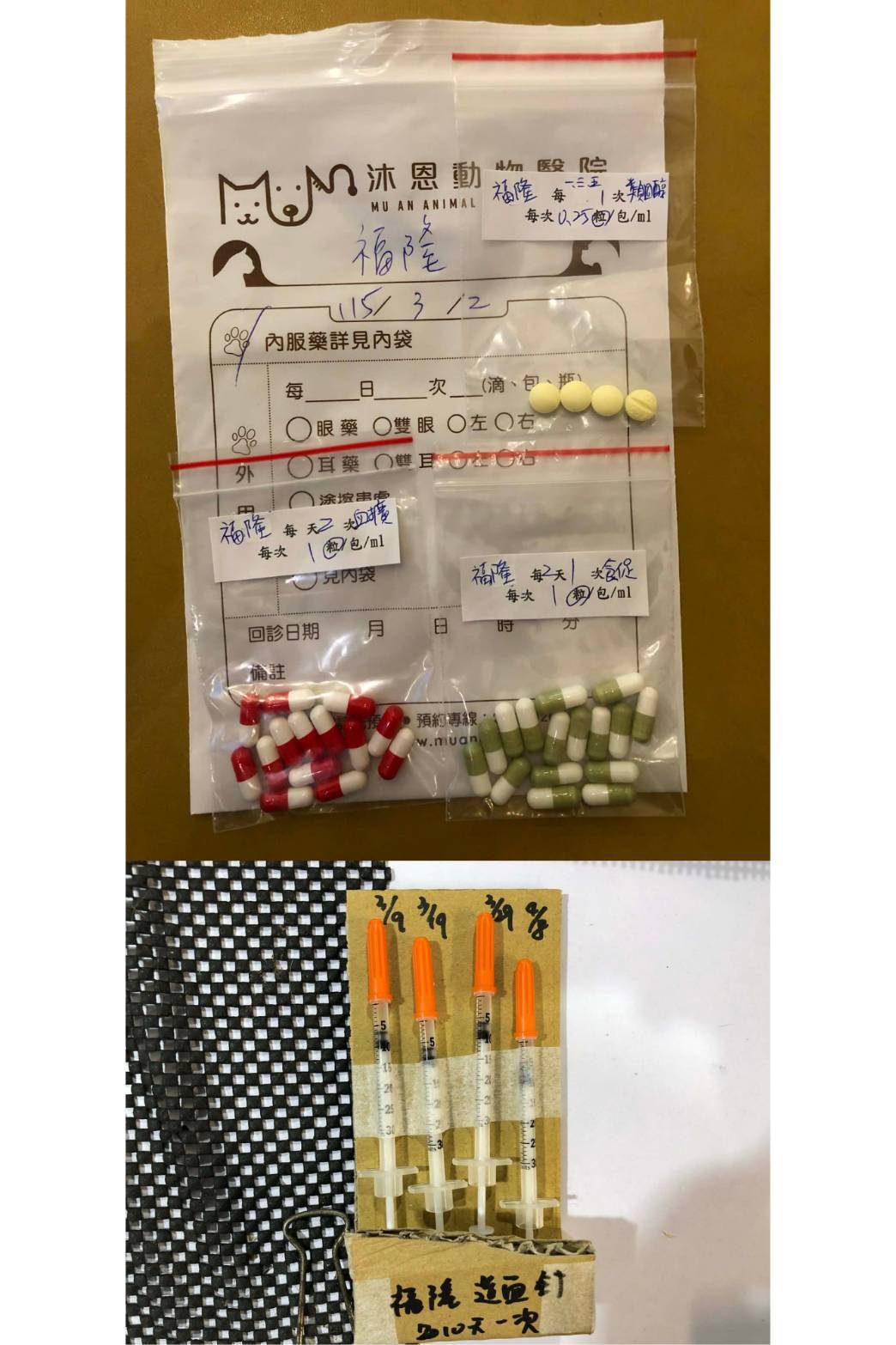 福隆出院後為了控制口炎,仍需吃抗生素、類固醇控制,另因仍有貧血須打造血針及皮下輸液,也持續定期回診追蹤,經過半年多用藥,貧血情形已改善可停造血針,也有打預防針,口炎雖有改善但仍未達理想情形,又因為吃類固醇讓血糖指數較高,所以定期回診除了檢驗血糖,也希望口炎得到控制後,有機會將類固醇逐漸減量,經過2年多的治療,福隆的口炎改善很多,除了類固醇已逐漸減低劑量,也可延長回診追蹤