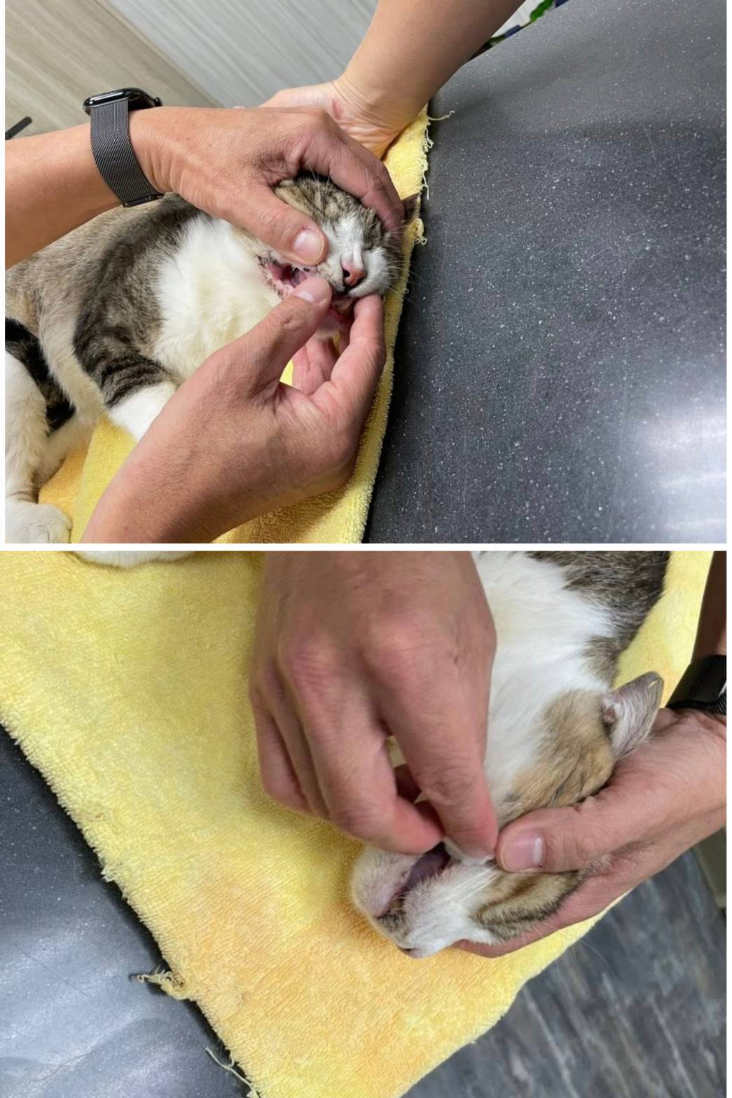 2025年10月16日於沐恩看診,因病毒感染長期無法抑制,所以耳朵及嘴巴總是會持續紅腫,需加強清潔保持乾淨。紅血球與球蛋白皆超出標準範圍,同時也須注意精神食慾狀況,若變差則需要儘速與醫院連繫回診。