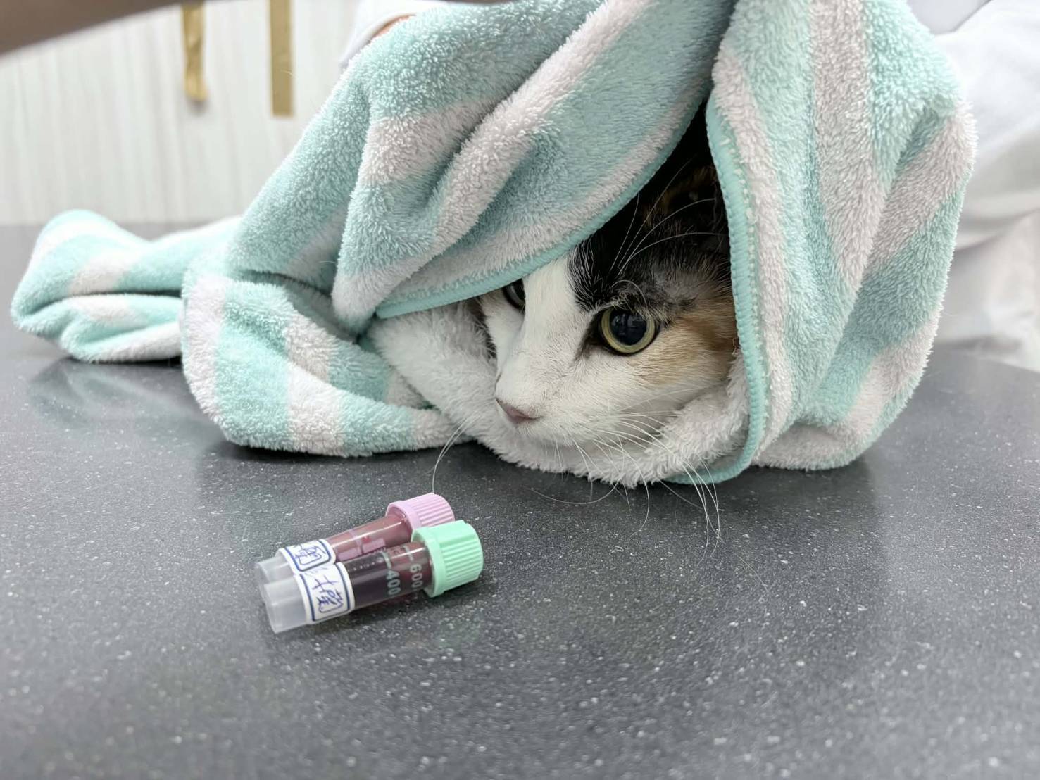 花木蘭是很漂亮的三花女生,雖然實際年齡很大,但本貓臉蛋還是相當美貌,她的個性較為緊張害羞,所以看診時都要用大毛巾裹住減少緊張,希望在持續治療後,能讓她的健康逐漸穩定;本筆醫助是2026年3月16日間於沐恩醫院看診的費用,包含血檢及用藥。