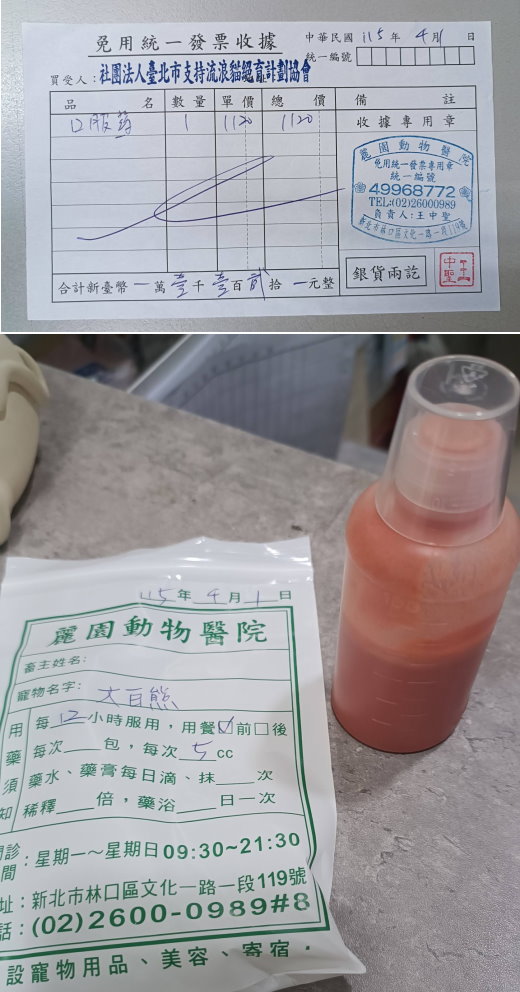 本筆醫助是大白熊於2026年3月28日間於麗園動物醫院看診的費用,包含用藥。