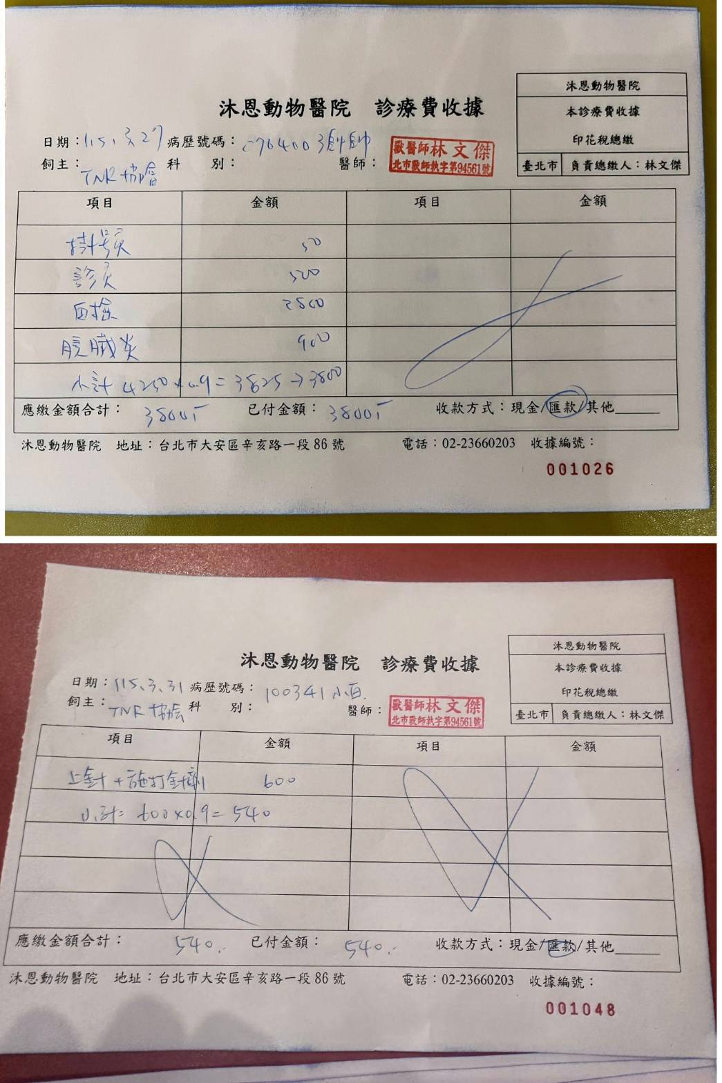 2026年3月26日晚發現帥帥嘔吐兩次且有水便,於是安排2026年3月27日於沐恩進行看診,血檢結果除肝指數稍高須注意體重變化外,胰臟炎為陰性,因此判斷甚無大礙,先每日服用沙美肝藥及若有嘔吐再服用胃乳,無須回診。本筆醫助是帥帥於2026年3月27日至沐恩醫院看診的費用,包含血檢及用藥。