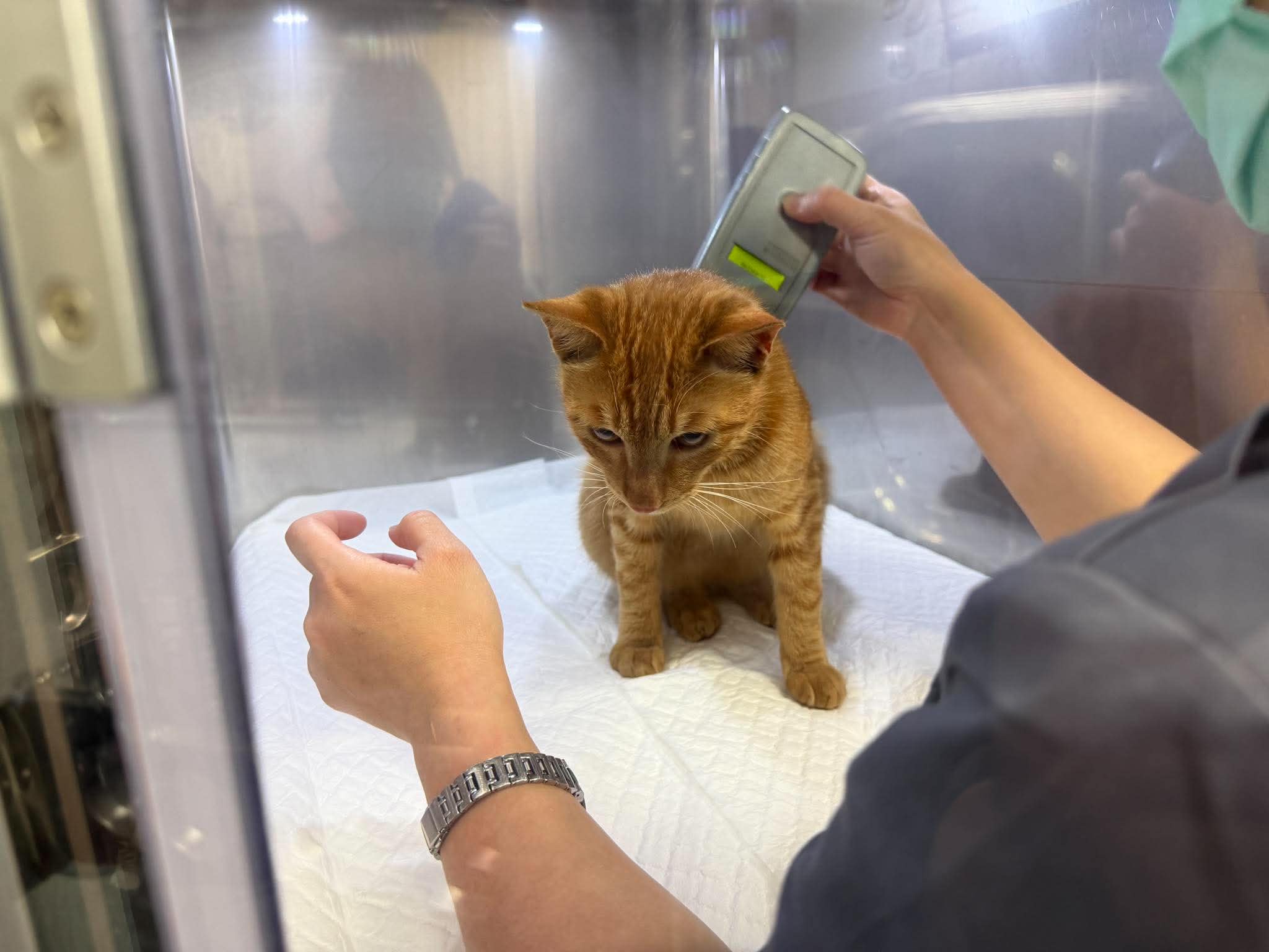 胸腔橫隔膜破裂、狀況嚴重,經北投、關渡地區就醫院所推介,尋求協會幫助。動物近況說明: 由於救援者直接電聯協會,事態緊急,剛好負責醫療人員在協會,聯絡合作醫院通融收貓,在院方休息前緊急就醫檢查。
