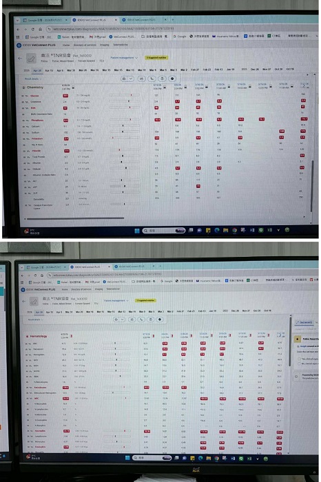 近期因善法有腹瀉狀況而於2025年11月27回診,血檢狀況看來除了肝腎指數略高,其他沒有太大問題,因此先開立止瀉藥治療。