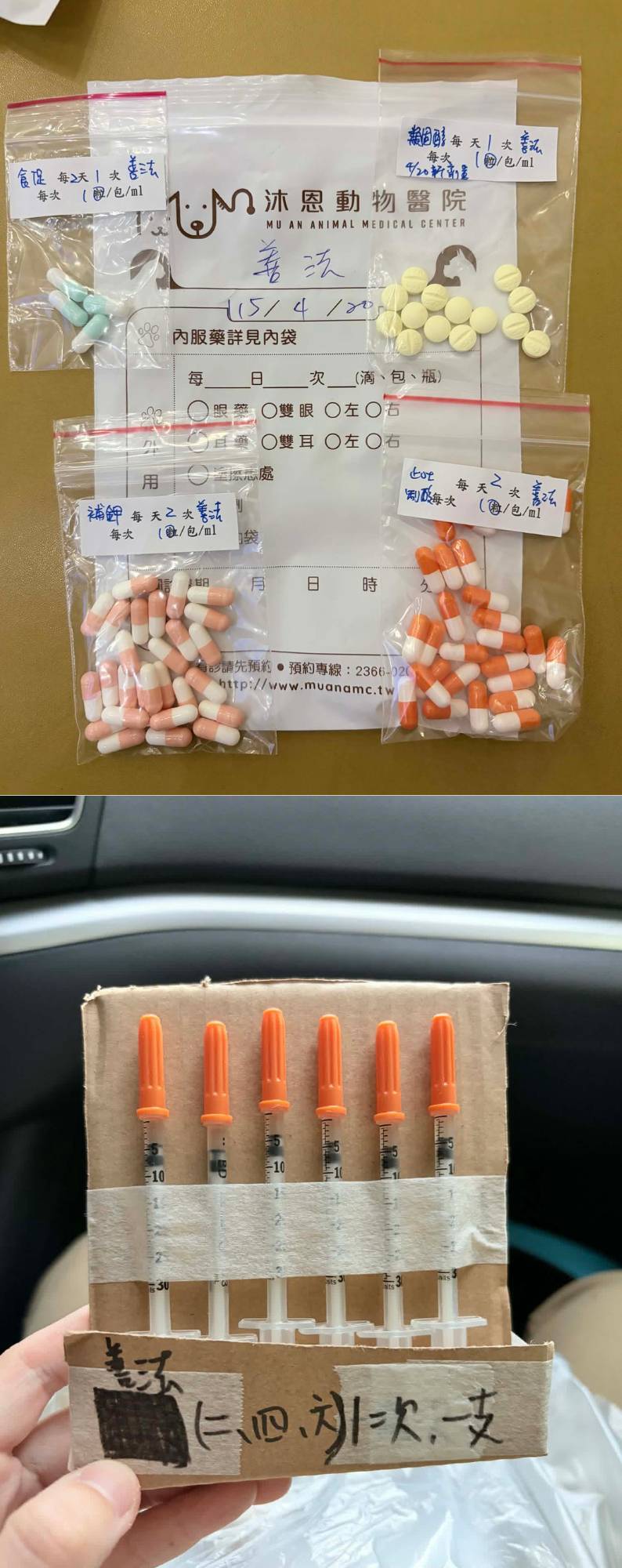 2025年12月26日於沐恩醫院回診,此次醫師協助幫忙剪指甲。其他指數皆超出於標準範圍,尤其磷離子升高到9.5,需加吃腎利磷,因過高會較難維持腎功能。後因善法連日不吃飯,且分別有吐乾飼料和黃水,因此安排2026年1月19日就醫檢查。觸診沒有異常。體溫也正常。先開立止吐及針制酸劑針,同時須施打皮下每天一次,每次150ml,食欲進步改打100ml,食慾恢復正常可停。