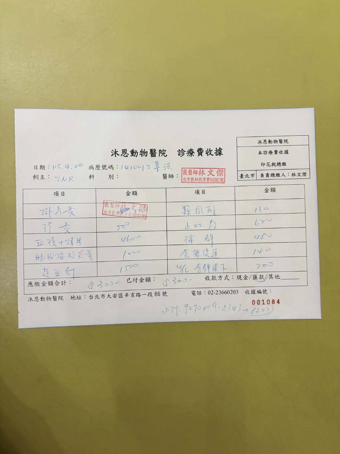 貓咪已年邁,思及身體狀況已走下坡,於9月12日出院後安置於協會台北貓房安養。能為年邁街貓盡份心力,是我們的榮幸,老三花取名善法(三花諧音),也頗有種修行者意味,代表對貓咪深深的祝福。本筆醫助是2026年4月20日於沐恩醫院的費用,包含血檢及用藥。