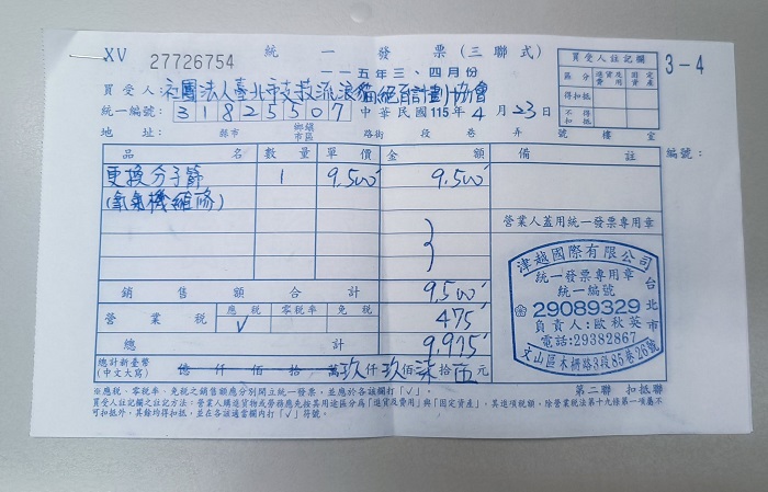 收據可抵稅請將地址mail至cashier@tnrtw.org0912940006763