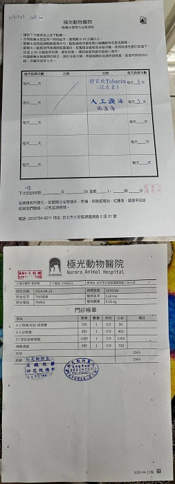 因應天氣變化,安養之家的貓房會視天氣變化開冷暖氣、開空氣清淨機並補充相關營養保健品,希望能讓callme的呼吸道問題能較為穩定,至目前callme的精神食慾都還不錯,也一樣每天找志工撒嬌討拍拍,callme現在圓滾滾的模樣與剛被救援時的紙片身材相比,真的是雲泥天壤之別,協會多年來持續的給她最好的醫療及用心照顧,讓callme能得到幸福新生,只是她的呼吸道問題還需持續回診用藥。本筆醫助是2026年4月21日間於沐恩醫院取藥的費用及2026年4月23日於極光醫院看診的費用,包含眼部檢測及用藥。