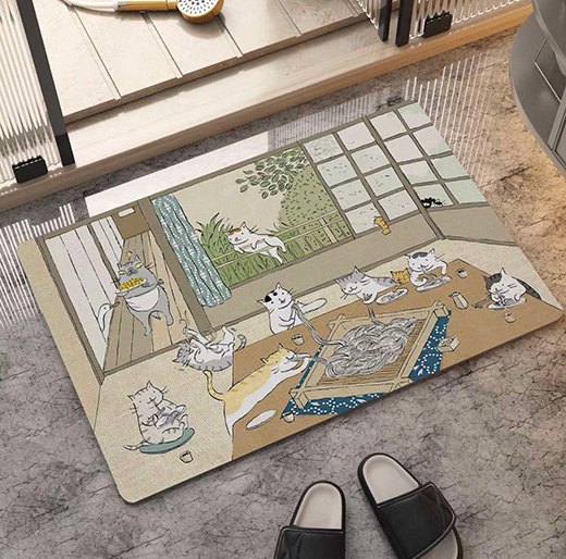 硅藻土地墊,40*60cm,止滑、吸水、快乾,可當腳踏墊、落砂墊、或是寵物餐墊,多種使用方式,圖案美觀可愛,皆為日式擬人貓生活。