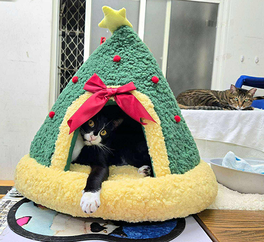 聖誕貓樹洞睡窩隱蔽、保暖、不易扁塌,貓咪最愛。