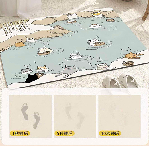 硅藻土地墊,40*60cm,止滑、吸水、快乾,可當腳踏墊、落砂墊、或是寵物餐墊,多種使用方式,圖案美觀可愛,皆為日式擬人貓生活。