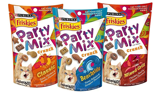 多種口味:喜躍 Party Mix 提供經典原味、炙燒烤肉和海洋鮮味等選擇,讓貓咪隨時享受不同的美味。