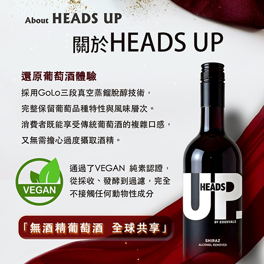 ●澳洲進口HEADS UP無酒精紅酒/白酒任選2支(每支750ml)●