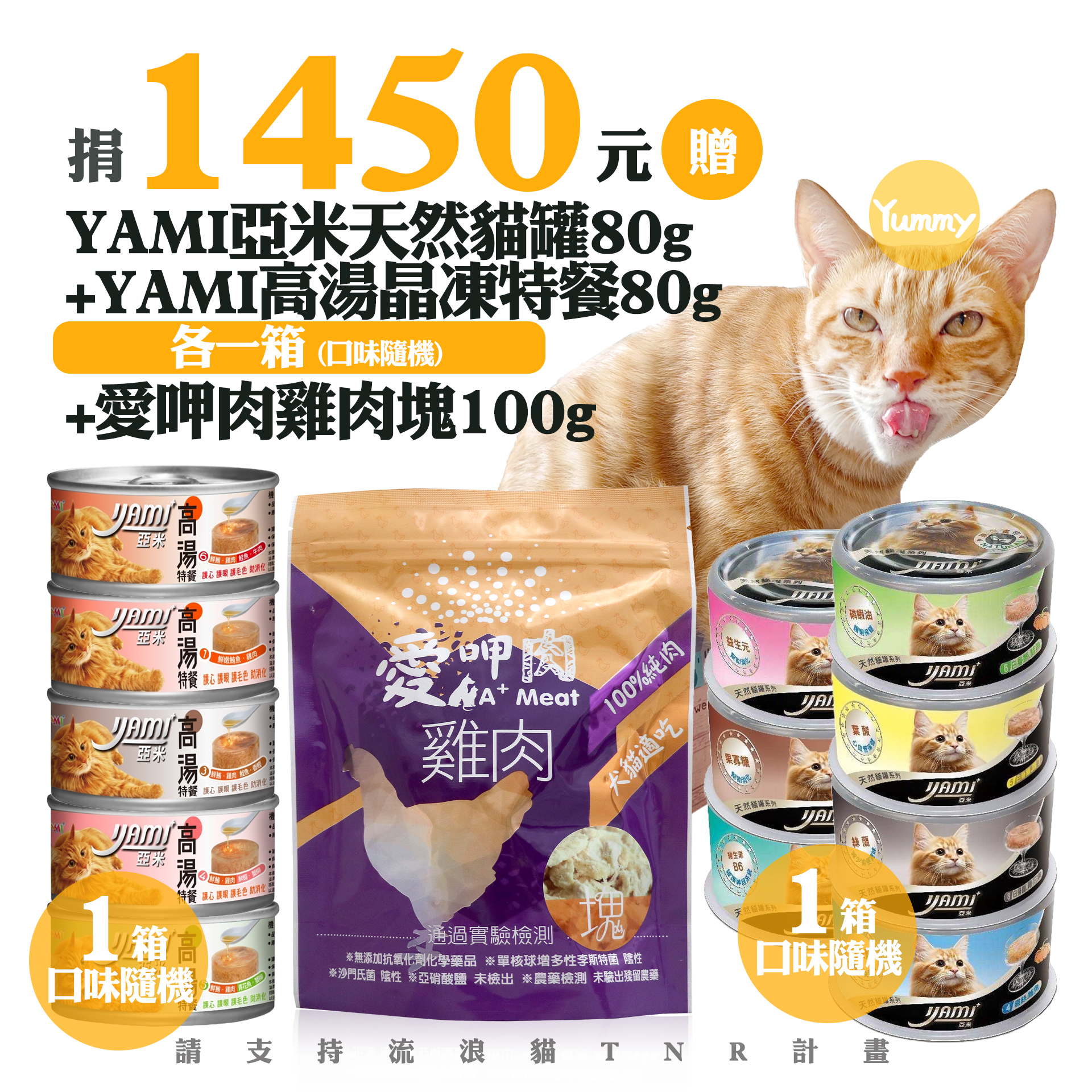 贈品名稱: 捐1450元贈YAMI亞米天然貓罐80g+YAMI高湯晶凍特餐80g各一箱+愛呷肉雞肉塊100g(口味隨機) 贈品總數: 40人 每人捐款金額: 1450元 已報名名額: 0 尚需求名額: 40 報名人員: 候補人員: 說明: 捐1450元贈YAMI亞米天然貓罐80g+YAMI高湯晶凍特餐80g各一箱+愛呷肉雞肉塊100g(口味隨機)