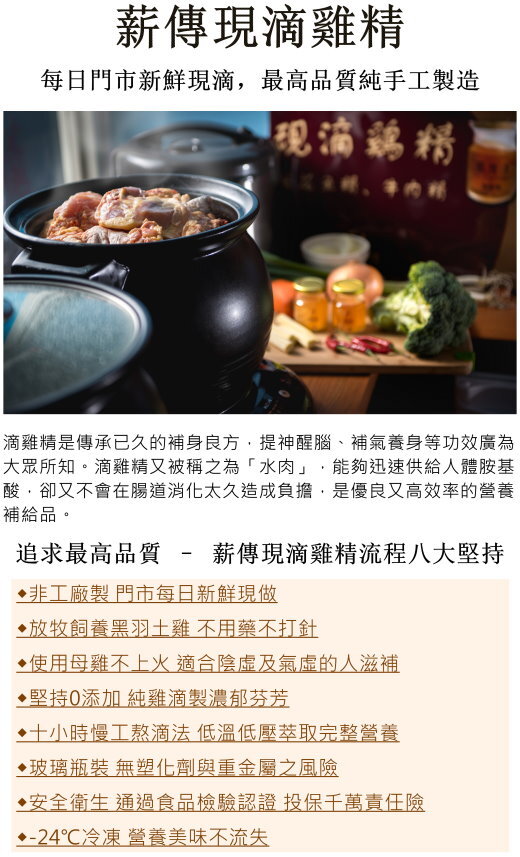*特別說明:有腎臟疾病、慢性病者應先詢問醫師是否適合飲用滴雞精