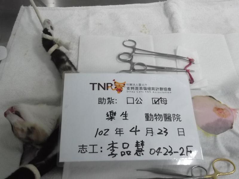 結紮醫院: 樂生動物醫院 結紮費用: 1200