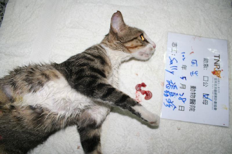 花色: 白底虎斑 誘捕地點: 建軍里一帶