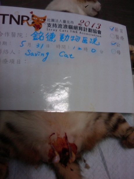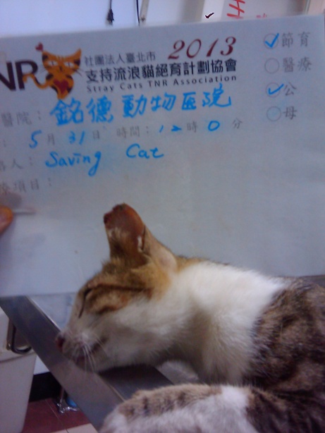 這是新來的成員,但脾氣不太好,會抓傷其他的貓咪,抓它花了些時間,終於順利的誘補了.結紮後,希望能終結它的敵意.