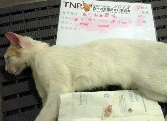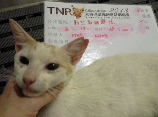 誘捕者暱稱: Star Wang 性別: 公 花色: 橘白(白居多) 誘捕地點: 吉羊路 結紮醫院: 新竺動物醫院 結紮費用: 800 助紮者: 已付款:Cynthia Lix1, Wen-chunx1, 范芮榕x1 額外醫療費用申請: 特別說明與誘捕心情: 吉羊路59~22巷中間的許多小巷弄間有許多貓穿梭。