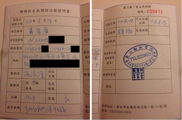 由我們愛媽自行付費 植入晶片/狂犬疫苗