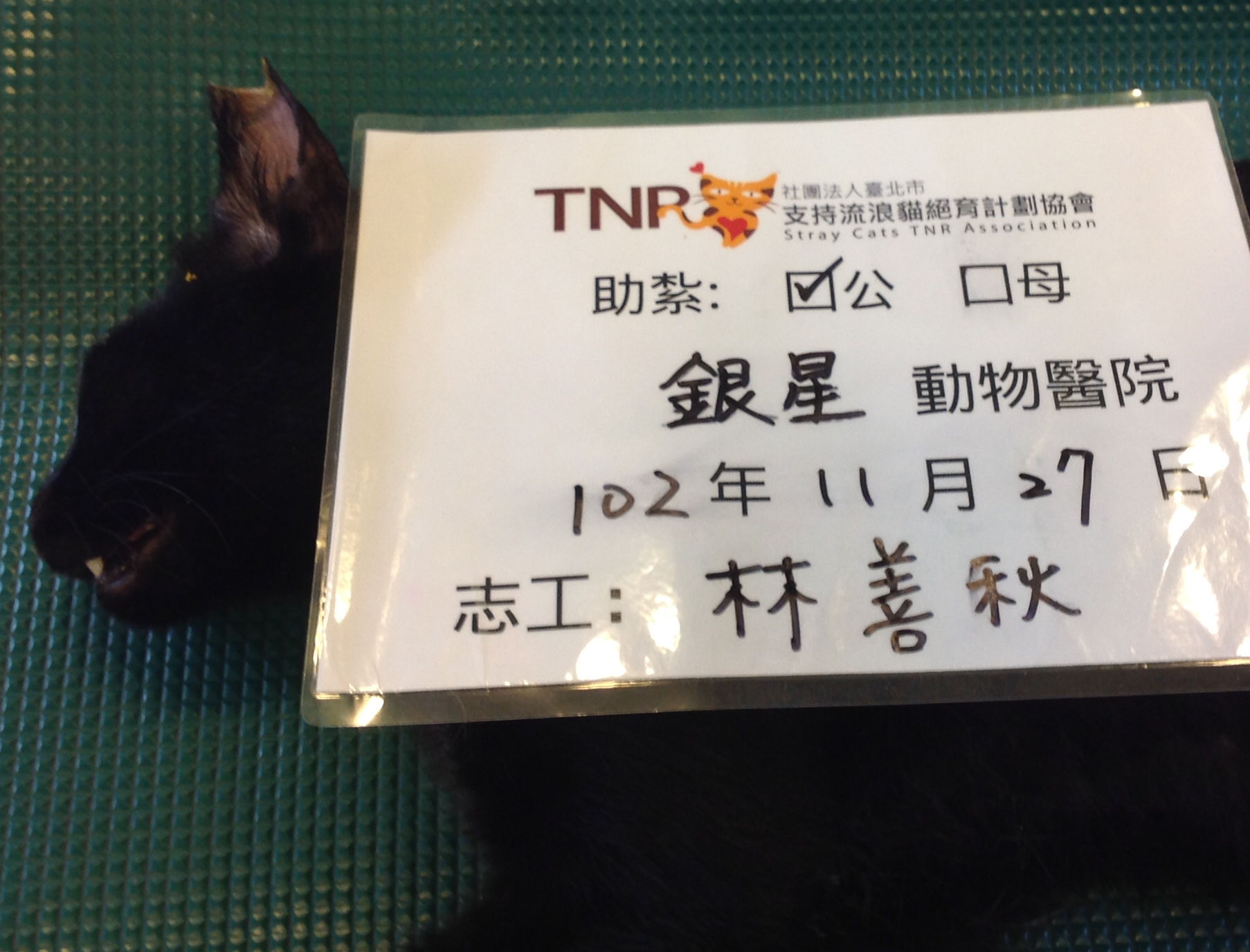 餵養人暫停餵食一會兒,大黑貓馬上就落網囉,雖然餵養人認為公貓不須結紮,最後還是認命地讓我們把貓給帶走,希望大家能幫忙贊助結紮經費,謝謝